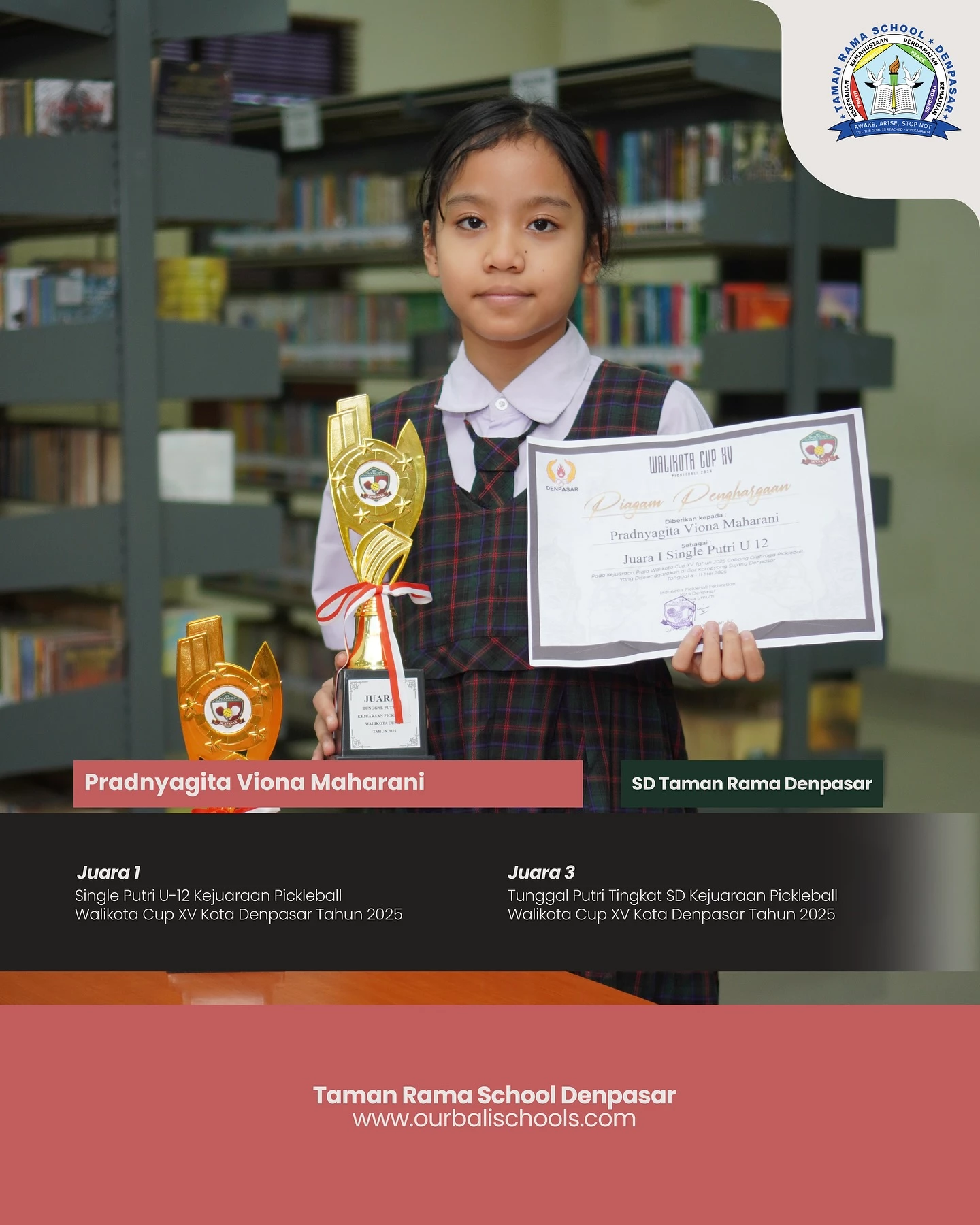 Siswa SD Taman Rama Denpasar yang luar biasa ini berhasil meraih prestasi gemilang sebagai Pemenang Kejuaraan Pickleball Walikota Cup XV Kota Denpasar!